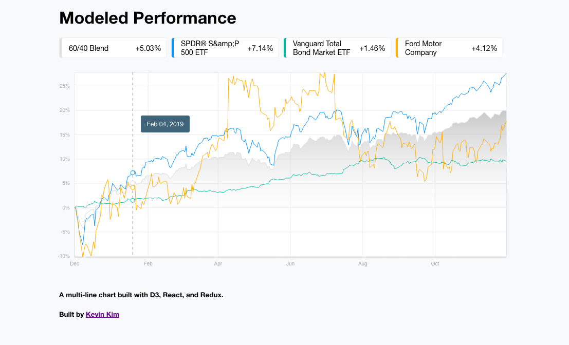 Built during my time at Riskalyze. A tool to help financial advisors visualize percent change over time for securities, bonds, funds, and other market benchmarks.